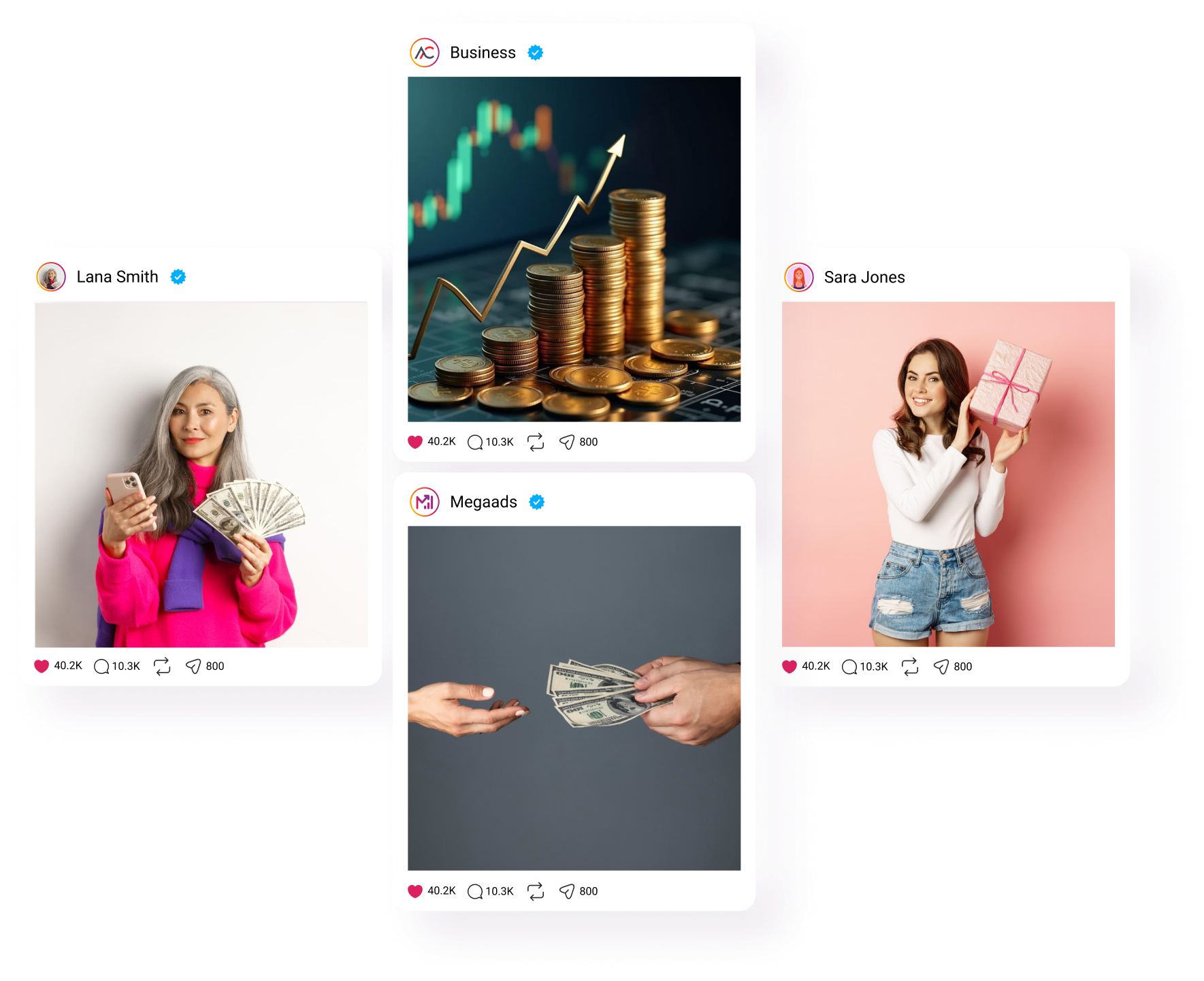 Social advertising is the process of creating and deploying clickable ads to reach target audiences through social media platforms, messaging apps, news feeds, and even outside apps and websites. Companies use social advertising campaigns to build brand awareness, generate leads, and/or capture sales revenue. At Mega Ads, we believe Social advertising is particularly effective at